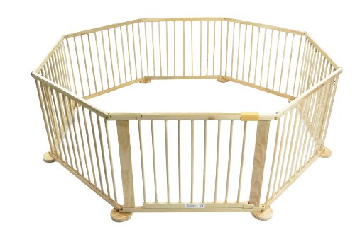 ProSource Playpen made our of real wood panels and has a simple and easy set-up with sturdy construction. Comes with 8 panels, 8 floor legs and a hinged swinging door with a safety lock. Adjust the size of this playpen by simply removing or adding panels.